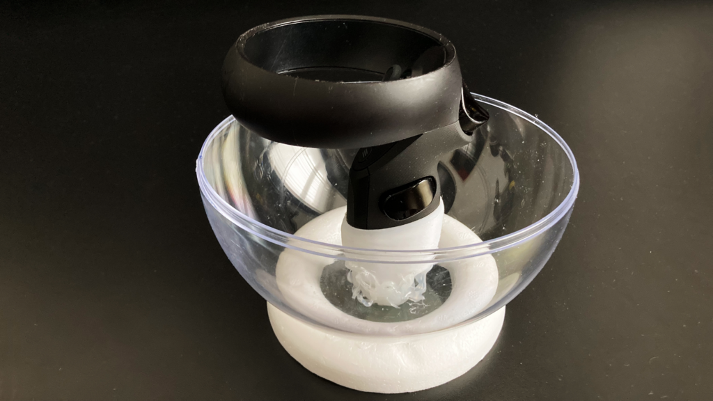 As a base for our input globe we used an acrylic glass sphere in which we attached an Oculus controller with a 3D printed mount.